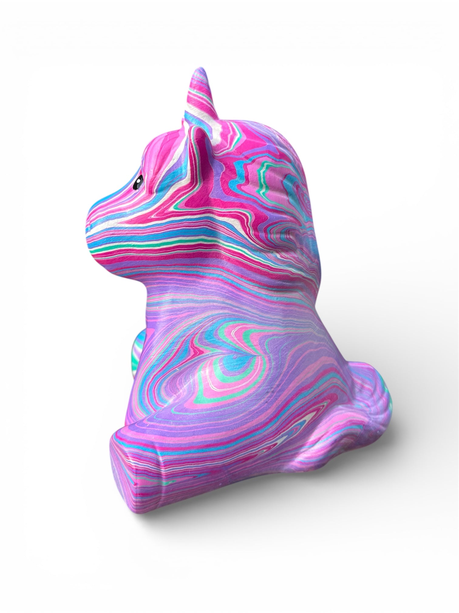 Carefully crafted and finished by hand, this unicorn makes a charming accent for a nursery, creative studio, shelf styling, or gift for unicorn lovers of all ages. The water-marbling process gives the surface a fluid, painterly look that feels both playful and artful.
