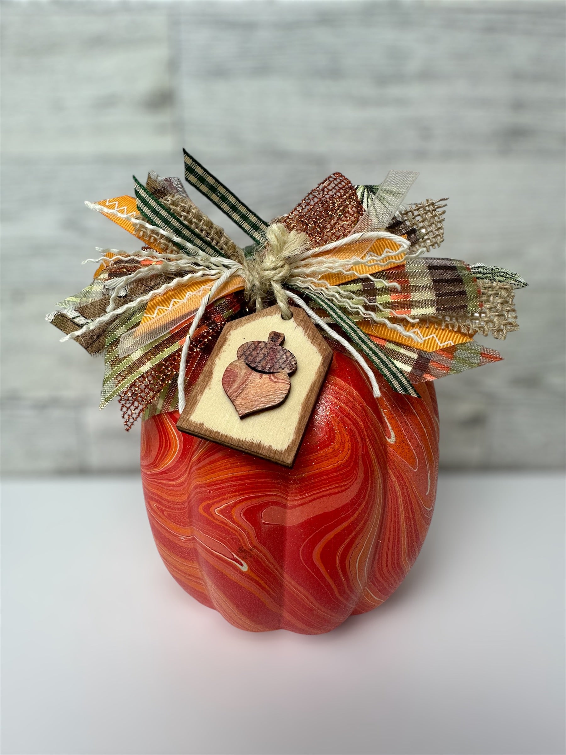 It's a Pumpkin Palooza! Add a touch of pizzazz to your fall decor with a custom designed water marbled ceramic pumpkin, crowned with a trendy messy bow! Create your pumpkin to fit your vibe! You’ll be amazed how simple the process is and how stunning your finished piece will look!